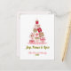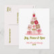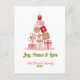 Elegant non-photo holiday card .This chic and stylish "Joy, Peace & Love" holiday card features a modern and minimal Christmas tree with red and pink gifts accents. The elegant text can be completely personalised with your choice of greeting, family name, year, and a custom message inside the card.