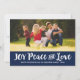 Joy Peace and Love Navy Blue Brushed Script Photo Holiday Card