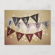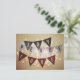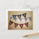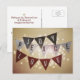 Customise this postcard with your personal message, signature or company logo using the templates provided. Included is the message "Wishing you Joy, Peace and Love at Christmas and throughout the New Year". The card features a vintage style photograph of triangle bunting made from antique book pages and papers, surrounded by Christmas twinkle lights.