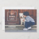 These holiday photo cards have a modern, minimalist vibe, and put your family photo in the spotlight. Design features a white square outline box with "Joy, Peace, Love" inscribed inside in white block typeface. Three lines of customisable text allow you to add a message, your name(s), and the year. Text fields can easily be moved to suit the layout of your photo.