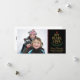 This classically simple design is enhanced with typography rendered in a faux-glitter look for an added touch of sparkle. Replace the sample photo with your own and easily adjust fit and location by using the 'Customise it!' button. The right side has a red 'glitter' accent stripe and a little 'glitter' heart above the words 'Joy Peace Love', which has the look of gold foil. Just below is a simple leaf garland in green faux-glitter. Fully customisable using the easy provided templates are the year, the greeting and family names.