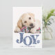 Spread JOY this holiday season with this modern and stylish holiday pet photo christmas card perfect for dog lovers and cat lovers! This pet Christmas card features your favourite photo with the word JOY in a fun playful modern retro typography style and a realistic paw print. Add your photo and your personal message to this elegant fun holiday pet photo design and make it your own one-of-a-kind original holiday card. PHOTO TIP: Pre-crop your photo BEFORE uploading and/or use the CROP tool in the PERSONALIZE section to adjust placement within the template area. For help with design or personalisation or transferring design to another product, contact designer via the chat button. COPYRIGHT © 2022 Judy Burrows, Black Dog Art - All Rights Reserved. JOY Personalised Pet Photo Blue Paw Print Dog Holiday Card