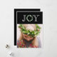 Elegant "Joy" typography with faux eucalyptus wreath for the letter "O". Add your personal photo to complete this holiday card. Add your own holiday sentiment and names on the reverse side. Pattern on front is carried over to the back of this card.