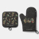JOY Pine Cone Red Berry Birds Dark Grey Holiday Oven Mitt & Pot Holder Set