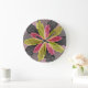Joy, Pink Green Anthracite Fantasy Flower Fractal Large Clock