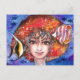Lovely Lady Girl Underwater Tropical Fish Watercolor Art