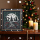 This appealing square wall clock features a layered Christmas illustration combining a holiday silhouette with festive text and foliage. The top half displays a dark silhouette of Santa's sleigh and reindeer flying across a large moon, set against a dark green and blue plaid background. Dark evergreen pines form a foreground hill. The bottom half is dominated by the elegant white script "Joy" surrounded by detailed holiday branches and red berries. The entire design is contained within a wide, dark outer wood-look frame, which is simulated using high-detail artwork and is not real wood.