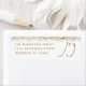 Script Joy Return Name Address Gold Glitter White Christmas. Joy is in an elegant handwritten style and easily personalise your name and return address. Shown in gold text on white with a faux glitter border in gold running along the top. Changes to colours of text and background can be made if you wish via the customise further option.