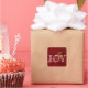 These delightful holiday stickers feature bold, eye-catching typography embellished with a cluster of flowers and express a message of joy. The burgundy background has a muted snowflake pattern.