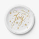 JOY Text Faux Gold Glitter Look With Stars Paper Plate