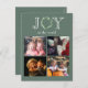 Festive "Joy" to the world typography with faux eucalyptus wreath for the letter "O" budget postcard. Add your personal photo to complete this card. Add your own holiday sentiment and names on the reverse side. Pine green colour on front is carried over to the back of this card.