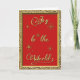 A Creative Card Design featuring a Christmas red background with a textured gold border framing the Christmas words "Joy to the World" surrounded with Photoshop star brush shapes. This colourful and attractive design comes complete with a customisable Christmas Greeting and Scripture Verse below to suit your own special Christmas design!