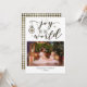 This chic holidays design features your favourite photo with the text "Joy to the world" in elegant calligraphy script accented with golden Christmas bauble and stars. Below personalise with your family name and year by editing the text in the text box provided.