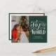 Joy to the World Green Calligraphy Photo Modern Holiday Postcard