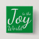 Pin this Joy to the World Green Holiday Button on your favourite jacket. It features 'Joy to the World' in a stylish script font on a green background. Spread a little Christmas cheer with this pin.