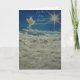 Christmas Greeting card showing a print of a hand painted oil painting of a white dove soaring over mountain tops and mist and under a blazing sun.