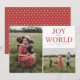 A cheerful holiday photo card design featuring classic red accents, festive polka dots, and elegant serif lettering that highlights the joyful message “Joy to the World.” The layout offers a warm, modern balance of typography and photo space, giving families the perfect canvas to showcase their favorite seasonal memories. A bold full-bleed photo pairs with a secondary image spot to create a beautifully personalized greeting, while the timeless red-and-white pattern adds a playful touch. Customize the names, year, and photos to create a heartfelt holiday card that feels joyful, stylish, and uniquely yours.