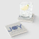 The coasters are gorgeous, a quality feel and heavy weight. They look like a precious archeological find. A rustic stone juxtaposed with a modern floral black and white print. I like the way the print goes slightly imperfect on the cut stone edges giving them a kind-of natural beauty.