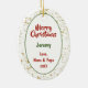 On this cute Christmas ornament, a little red Pomeranian puppy wears a winter hat and scarf, and is wrapped in Holiday lights. At the bottom is red script text that currently says "Joy to the World" but you may easily change it or personalise it. A gold confetti splattered background gives added interest to the design. The back has a gold confetti frame around a white oval containing four more customisable text fields. There are many more Pomeranian image products, as well as other dog breed items, at Dog Village. AI generative content used.