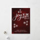 This pretty design makes a great addition to your festive Christmas Holiday Season. It features a white graphic depicting "joy to the world" set up with two complementary fonts. Surrounding the words are three trios of white snowflakes. The word "joy" is rendered in a pretty script font with a long flourish on the end of the last letter, making room for the all-caps, bold, casual "to the world" setup. Behind these overlays is a red and black photo depicting bokeh light flares above a sparkling glittery base, which to the celebratory feel. Use the template fields to add your personal message in place of what appears now. Matching pieces are available in the collection.