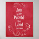 Joy to the World the Lord is Come Christmas Prints and Posters with red background and white font. Inspirational Christian quotes and messages.