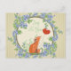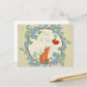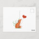 Animal themed postcard, showing a beautiful orange fox holding a red heart shaped balloon surrounded by nature. A holiday postcard can be mailed to friends and family or can be used for other purposes such as handouts to your holiday event or promotional cards.