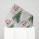 Patterned tissue paper with a funny illustration. A cute llama wearing black sunglasses and a red santa hat. Standing behind a Christmas tree with festive presents. The word Joy written above his head in a colourful holiday font. Silver bokeh background. Whimsical and fun Christmas themed design.