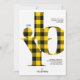 Joy Typography Yellow Buffalo Plaid Photo Holiday Invitation