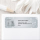 Joy Winter Trees Christmas Return Address Labels - Trendy Calligraphy - In muted silver blue colours, a stand of line art pine trees - standing in a snow scene done in bokeh style - Joy written in a hand scripted calligraphy