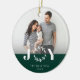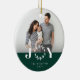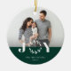 A commemorative keepsake ornament featuring customer photo with white Joy overlay and colour block bar of colour at the bottom. The back has a coordinating solid colour and text area for additional message.