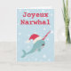 Joyeux Narwhal whale pun Merry Christmas Holiday C Card