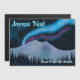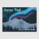Purple and blue northern lights glow over snow-covered mountains on a cold night in Alaska. French text reading, “Joyeux Noёl” appears in glowing blue and white. Add your own additional text.
