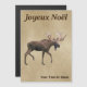 A "vintage look" digital painting of a bull moose (Alces alces) superimposed on an old paper or parchment background image. French text reading "Joyeux Noёl" also appears. Add your own additional text.