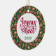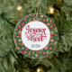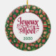 Joyeux Noel Folk Art Green Custom Ceramic Ornament