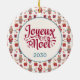 This fabulous Christmas folk art cream round ceramic ornament with a pattern of santas, reindeer, stars and presents that says Merry Christmas in French "Joyeux Noel" and has the year would look awesome on your Christmas tree. It's so festive and will go with any Christmas decor - it's rustic yet retro and modern yet traditional! Get some as gifts for loved ones...they'll love it!