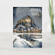 Joyeux Noel French Language Christmas Wishes holiday greeting card. A beautiful watercolor rendition of Mont St Michel, a famous Gothic style Benedictine abbey on a rocky outcrapping off the coast of Normandy, France, a setting steeped in faith. The verse inside reads "Nous vous souhaitons un joyeux Noël et une bonne année", the French equivalent of We wish you a Merry Christmas and a Happy New Year. I also offer an English language version of this card.