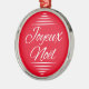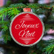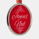 Metal ornament with "Joyeux Noel" on it. It has a gorgeous font design by Alma Wad. French Christmas wishes in pretty white letters on a red background. A stylish design that looks fantastic on a green Christmas tree,