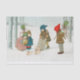 An absolutely super cute vintage Christmas illustration of children releasing baby pigs in a snow forest wonderland.