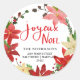 Joyeux Noel Poinsettia Wreath Return Address Classic Round Sticker