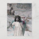 A vintage French Christmas postcard from the public domain. It features a girl dressed as a Christmas angel carrying gifts.