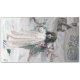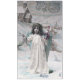A vintage French Christmas postcard from the public domain. It features a girl dressed as a Christmas angel carrying gifts.