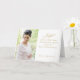 Announce your big news in style with these chic pregnancy announcements featuring your favourite vertical photo with a golden hand lettered text overlay reading "Joyful!" Personalise with your name and expected arrival date.
