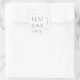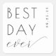 This square sticker features a minimalist design with the phrase "BEST DAY ever" in bold and cursive typography, creating a playful yet sophisticated look. The layout is clean and spacious, emphasizing clarity and simplicity with a monochromatic color palette of black or dark gray on white. Perfect for adding a celebratory touch to any occasion, this sticker conveys joy and optimism through its elegant font choices and balanced composition. Its modern style makes it ideal for personalizing gifts, stationery, or everyday items to mark special moments.