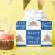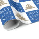 Joyful Blue Typography Christmas Tree Pattern Wrapping Paper. Blue and white background pattern with a simple Christmas tree. White Merry, Happy, Jolly typography.