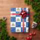 Joyful Blue Typography Christmas Tree Pattern Wrapping Paper