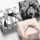 Fun, bold, and modern festive wrapping paper three sheet set to dress your gifts up in a modern style. The design features bold typography letters "Joyful" with the "o" created with a simple modern wreath shape. Set features a white, black and pink wrapping paper sheet. Design by Moodthology Papery