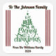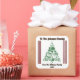 This cheerful square sticker features a stunning green Christmas tree design adorned with playful stars and ornaments.