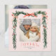 This elegant photo holiday square card features a watercolor pine branch frame (border) adorned with red ribbons, holly berries, and botanical greenery, along with an additional photo on the back. Send Christmas cheer to family and friends.