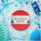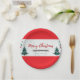 Add a festive touch to your holiday celebrations with this beautifully designed Christmas paper plate. Featuring a bold red border, elegant “Merry Christmas” lettering, and charming illustrations of Christmas trees and seasonal greenery, this plate brings warmth and holiday cheer to any table setting.
