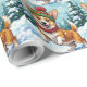 Joyful Corgi Dog Bouncing in Snow with Pom Pom Wrapping Paper